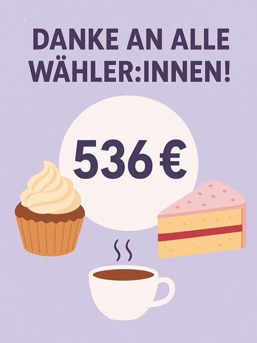Durch die großzügigen Kuchenspenden bei den Stichwahlen konnten wir unglaubliche 536 € einnehmen!